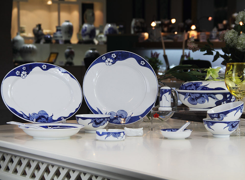 # 公司简介 # 产品介绍 【品牌】:金品陶/红叶 【工艺】:高白瓷/国标一级/釉下手绘 【配置】:大号汤锅1套,12寸鱼盘1件,10寸平盘1件,大号汤匙1件,烟缸1件,牙签筒1件,8寸深盘10件,4.5寸饭碗10件,3寸味碟10件,针匙10件,龙头筷架10件 【包装】:礼盒包装 # 图片展示 # 下单购买 微信客服咨询